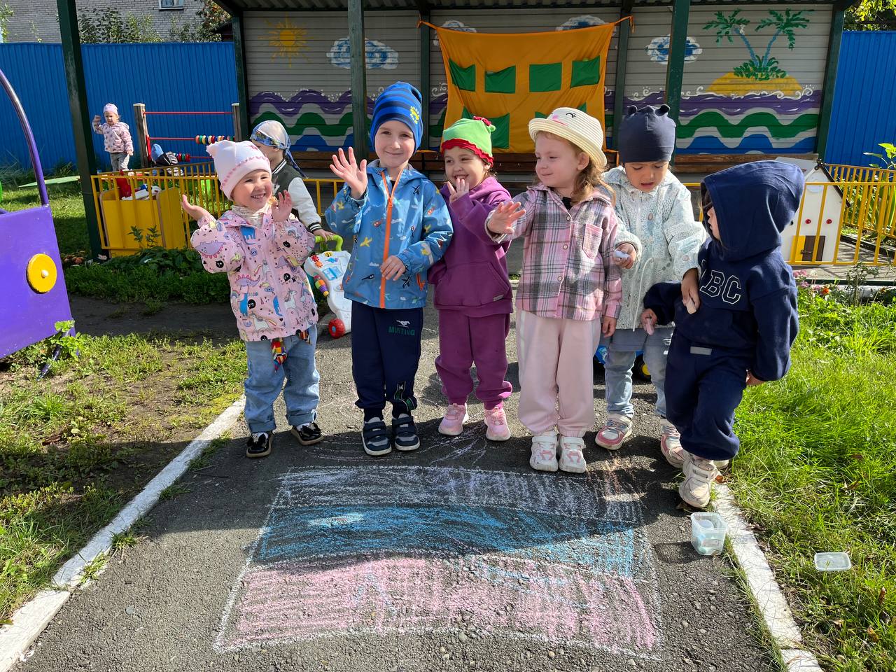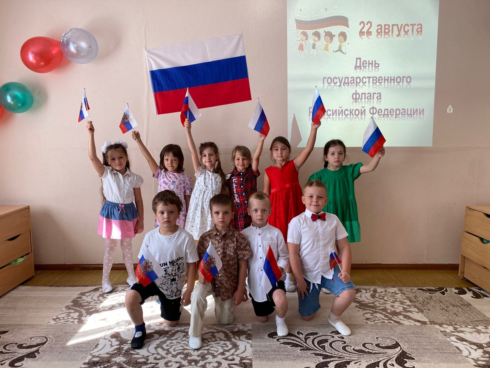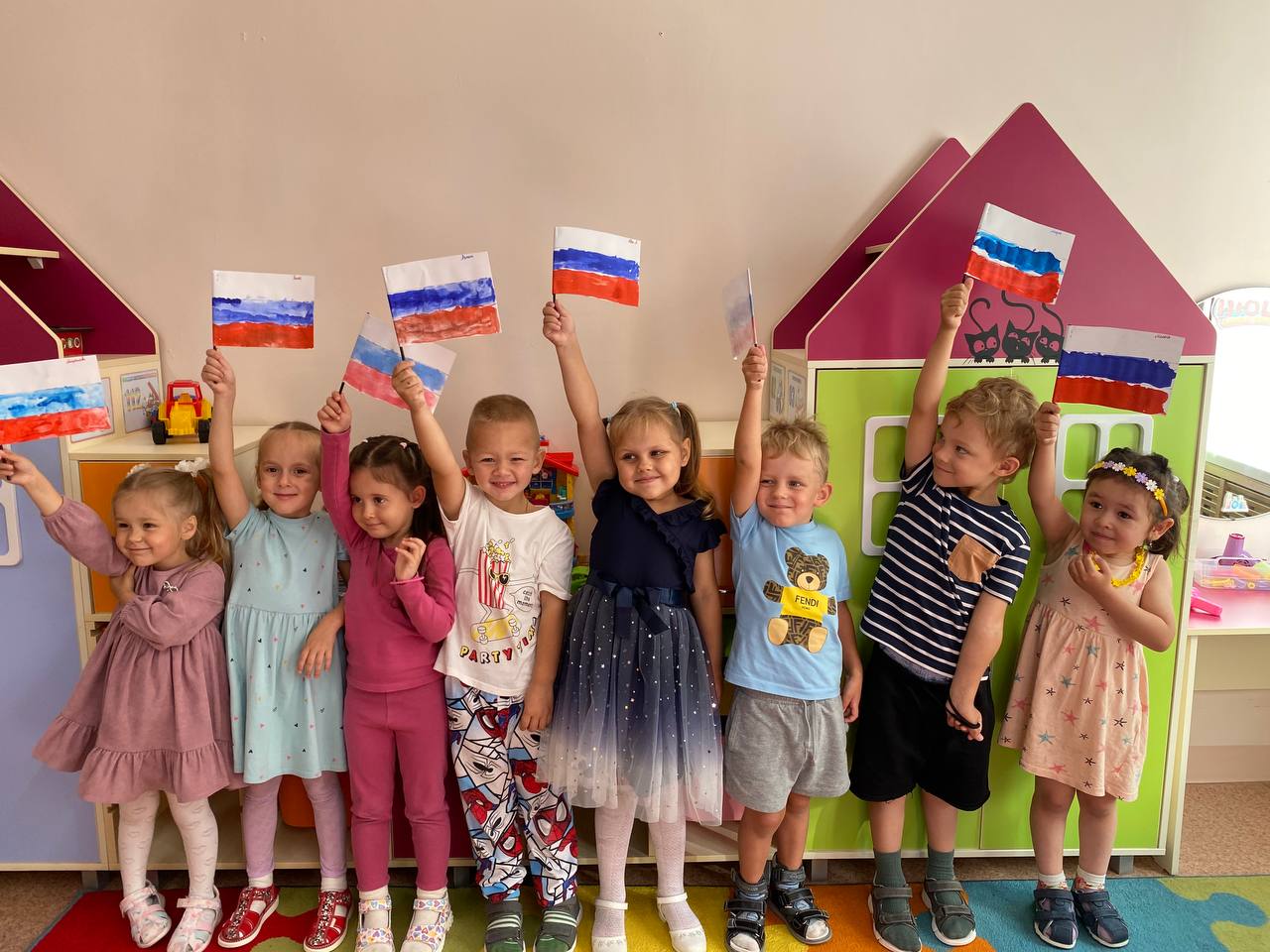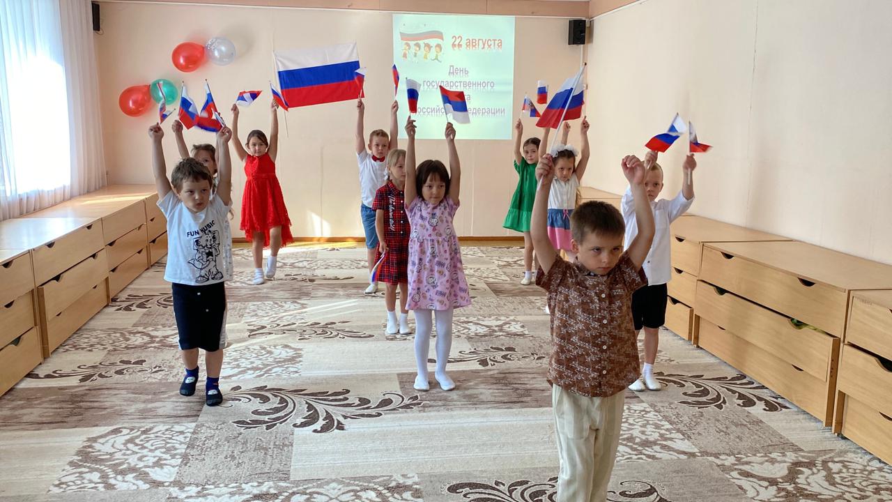 В это день для детей были проведены тематические занятия, беседы, посвященные Российской символике. Дошколята узнали об истории появления Российского флага и его значимости для нашего государства, а на прогулке дети с удовольствием поучаствовали в рисовании флага Родины на асфальте.