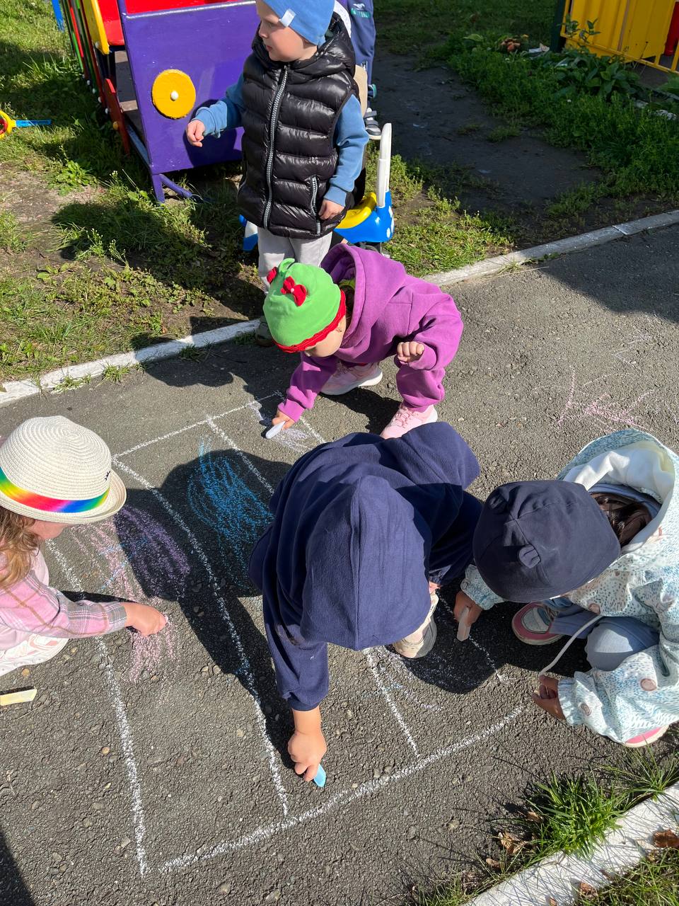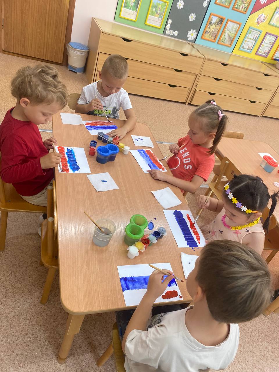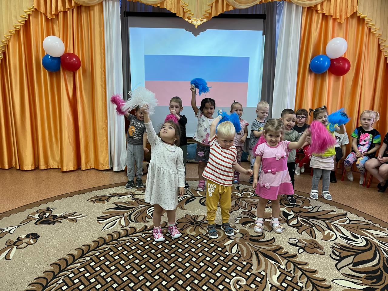 В это день для детей были проведены тематические занятия, беседы, посвященные Российской символике. Дошколята узнали об истории появления Российского флага и его значимости для нашего государства, а на прогулке дети с удовольствием поучаствовали в рисовании флага Родины на асфальте.